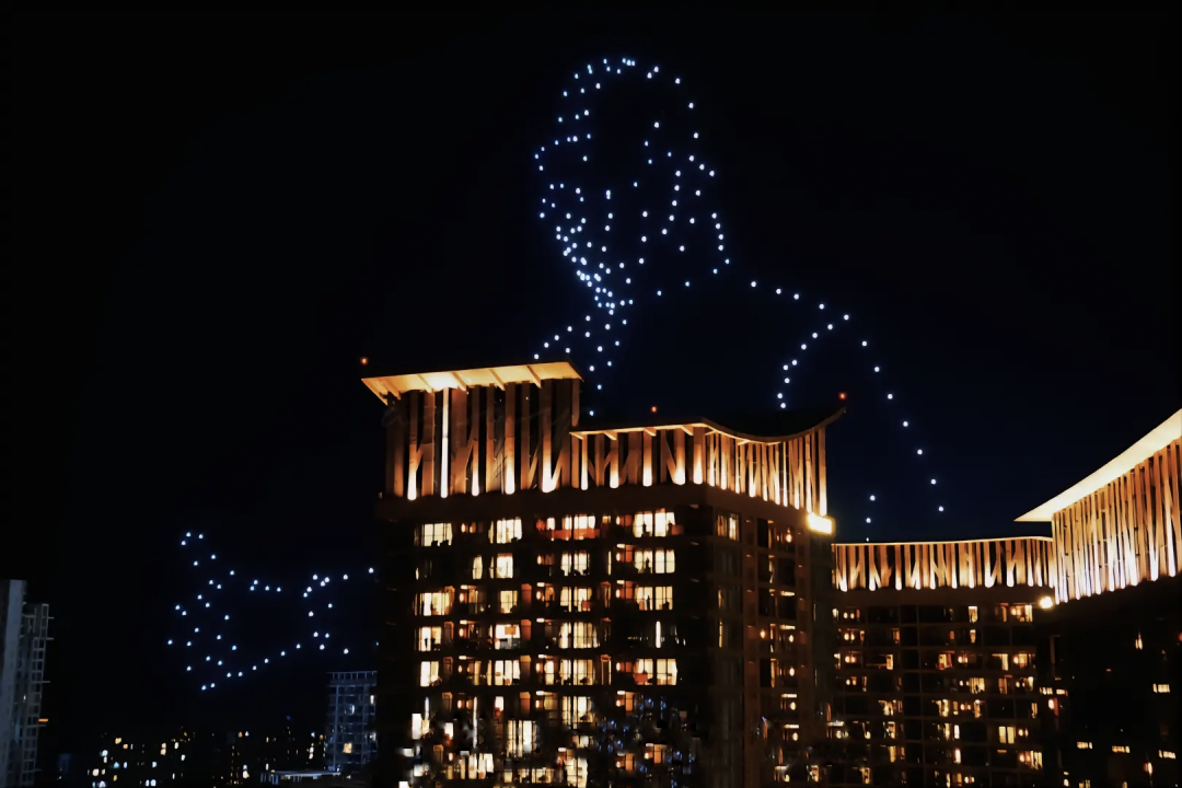美高梅 美高 新闻中心 同心抗疫守护鹿城!300架无人机点亮夜空,致敬援助三亚医护人员