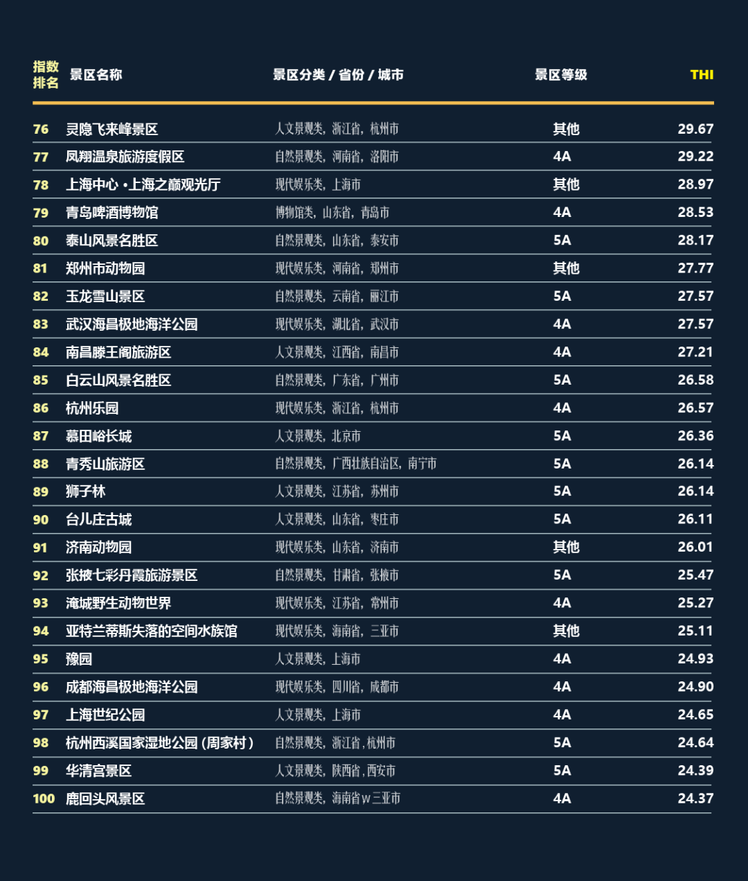 4月20日,由中国旅游景区协会和华侨城创新研究院联合研发编制的“中国旅游景区欢乐指数指数(THI)研究报告及排名”正式发布,定位于打造公正、科学的具有社会影响力和行业指导性的旅游指数体系,基于旅游大数据的应用,以公正、客观原则对游客的综合体验评论进行量化科学分析,反映中国旅游行业开展的时代特征。该指数产品既有助于景区运营,也为游客出行给予了有价值的参考。据悉,“欢乐指数”及排名在全国旅游行业属于首创,核心算法已在国家知识产权局申请了专利。